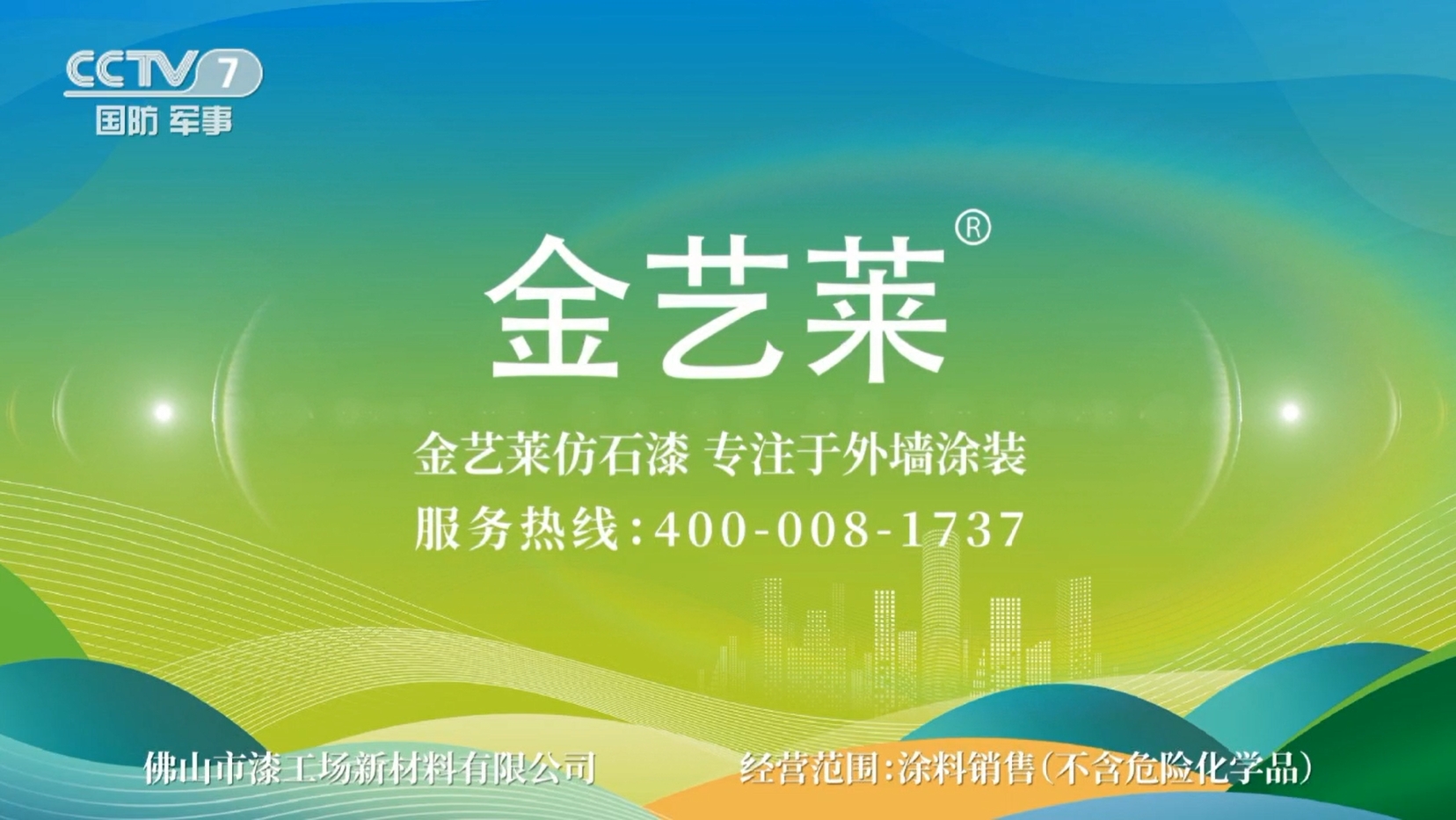 2023年11月,对于佛山市漆工场新材料有限公司来说是一个具有里程碑意义的重要日子,旗下的“金艺莱”高端别墅外墙涂料品牌,强势荣登央视CCTV-7 国防军事频道进行品牌展播、华夏航空CRJ900航班以及珠海北高铁站,品牌营销全线出击,彰显强大实力!